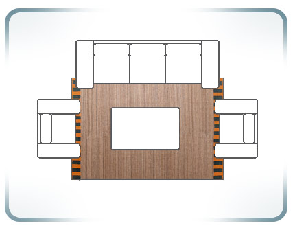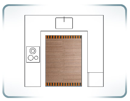 در یک اتاق نشیمن کوچک، این فرش زیر یک میز قهوهخوری یا جلوی یک شومینه با دو صندلی راحت که تقریباً به طور کامل روی فرش مینشینند، قرار میگیرد.