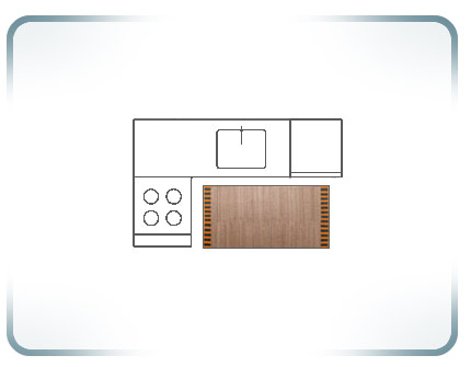 قرار دادن یک فرش 80*220 سانتی متری که در کل فضای آشپزخانه می گذرد، به ایجاد احساس وسعت کمک می کند.