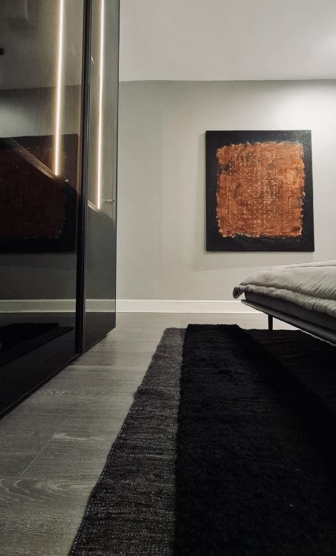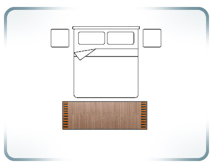 یک جایگزین در اتاق خواب، قرار دادن یک فرش عمود بر انتهای تخت است. این امکان ایجاد فضای عبور در پایین یا احساس وسعت را فراهم می کند.